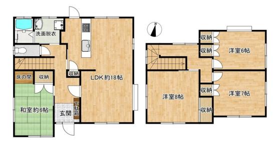 4LDK 駐車2台可能 2025年10月内外装リフォーム済(ユニットバスやキッチン、トイレ等の水廻り機器交換や壁紙・床張り替え済です。) 温水洗浄便座・システムキッチン・IHクッキングヒーター・シャワー付洗面化粧台・モニタ付インターホン・全居室収納・玄関収納 他設備充実しています。